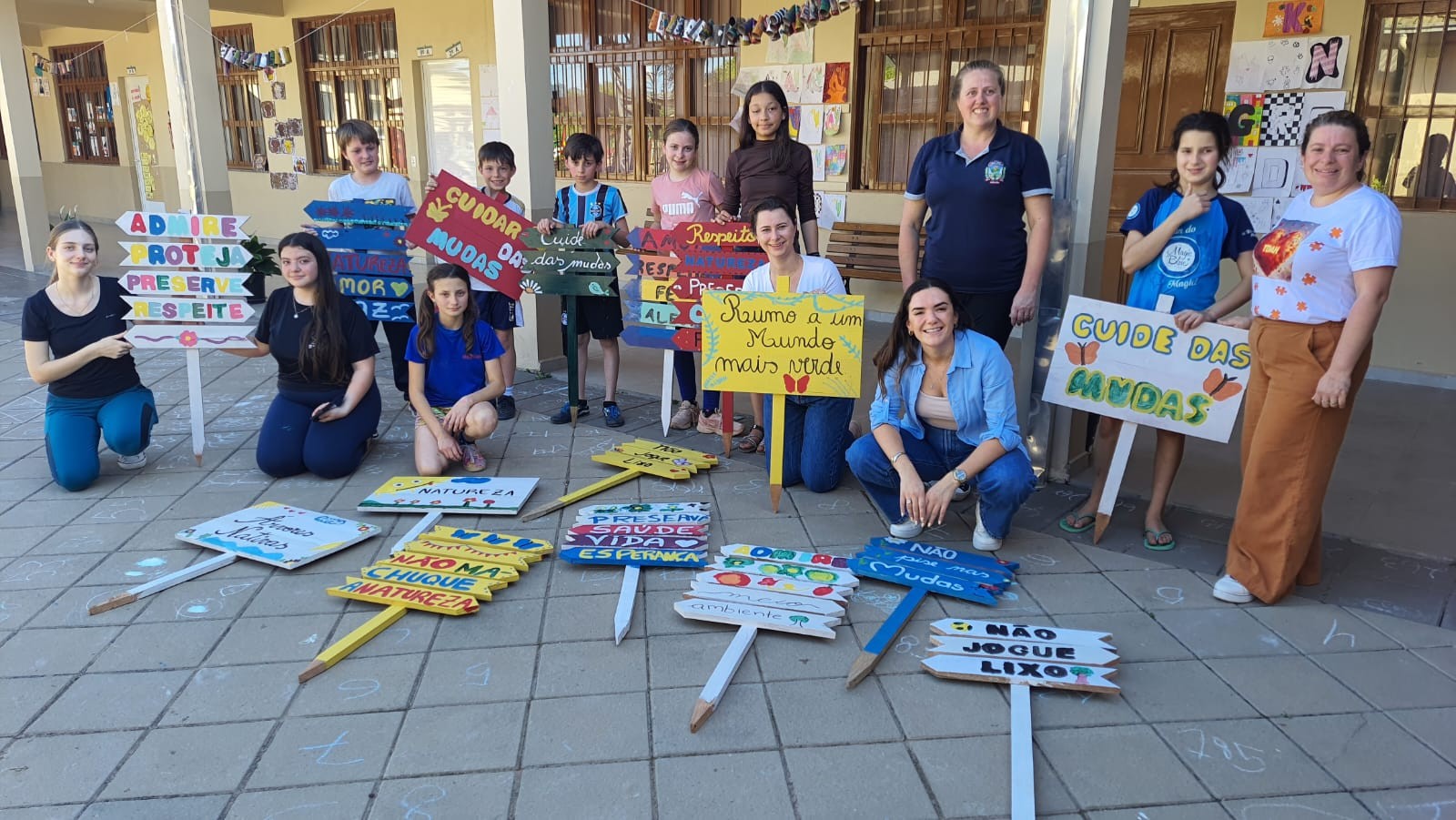 Durante a ação, confeccionaram 21 placas educativas que, a partir de amanhã, irão colorir a área de plantio de mudas do Parque Municipal. As mensagens destacam a importância da preservação do meio ambiente e têm como objetivo conscientizar a comunidade sobre o valor desse espaço verde para o município.