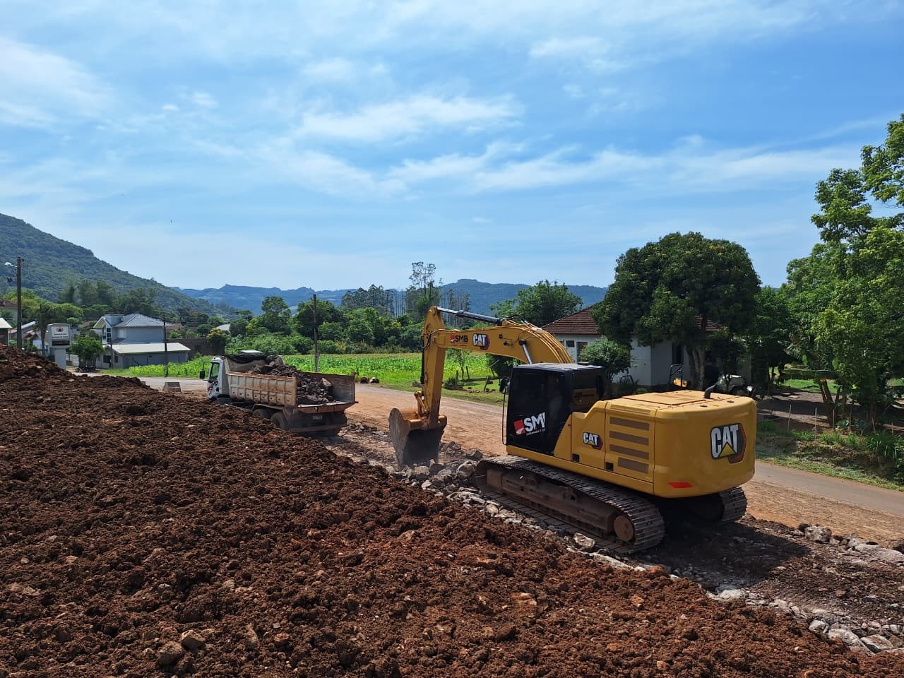 Foram intensificados os trabalhos de terraplenagem na área onde serão construídas duas novas instituições de ensino do município. O local, situado ao lado do ginásio da Sociedade Escolar, também receberá uma nova estrada de acesso, com o objetivo de melhorar o fluxo de veículos e garantir mais segurança e mobilidade.