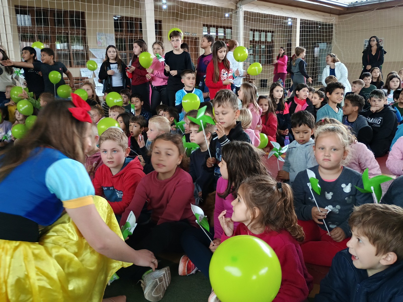 A programação foi repleta de alegria e encantamento, com personagens infantis, balões, balas e brincadeiras que proporcionaram momentos de diversão aos alunos. A presença da Abelha, mascote do Programa A União Faz a Vida, trouxe ainda mais entusiasmo e reforçou os valores de cooperação e amizade entre as crianças.