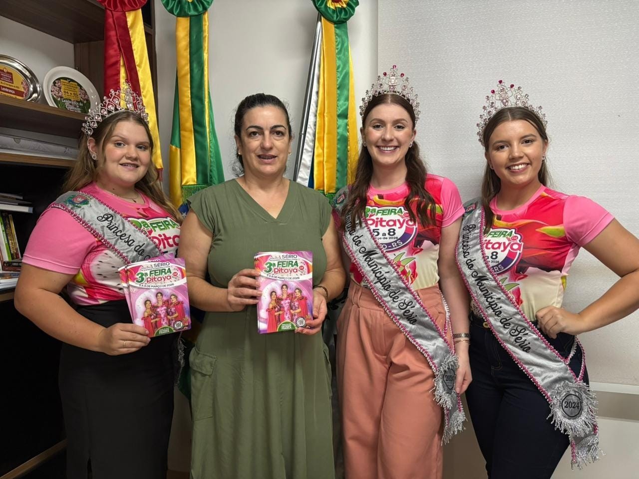 A comissão organizadora da 3ª Feira da Pitaya, acompanhada pela rainha Janaína Bianchetti e pelas princesas Nicole Dandara Guarnieri Grahl e Kauana Viana, realizou uma visita ao município com o objetivo de divulgar as atrações do evento.