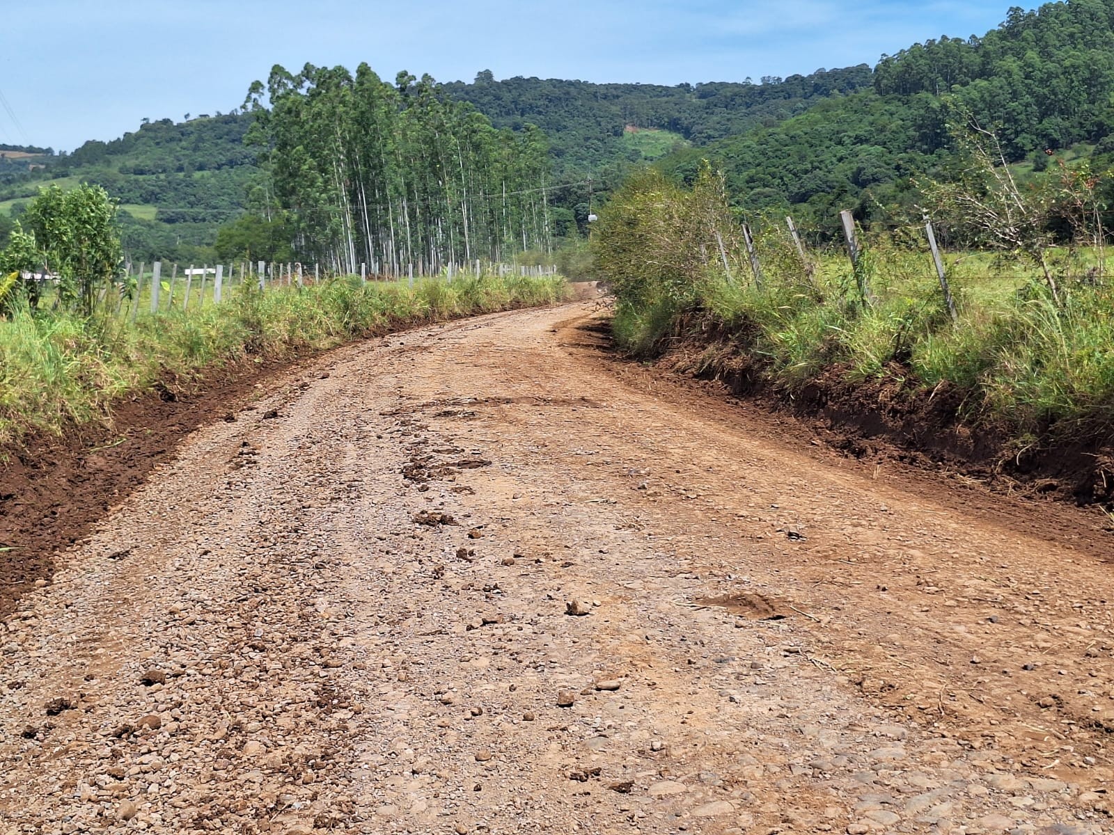 Nesta semana, as melhorias contemplaram as localidades de Linha Tigrinho, Vasco Bandeira e o distrito de Bela Vista do Fão. Entre os serviços executados estão o alargamento das vias em alguns pontos, a abertura de valetas para o escoamento da água da chuva, a colocação de material, além do patrolamento.