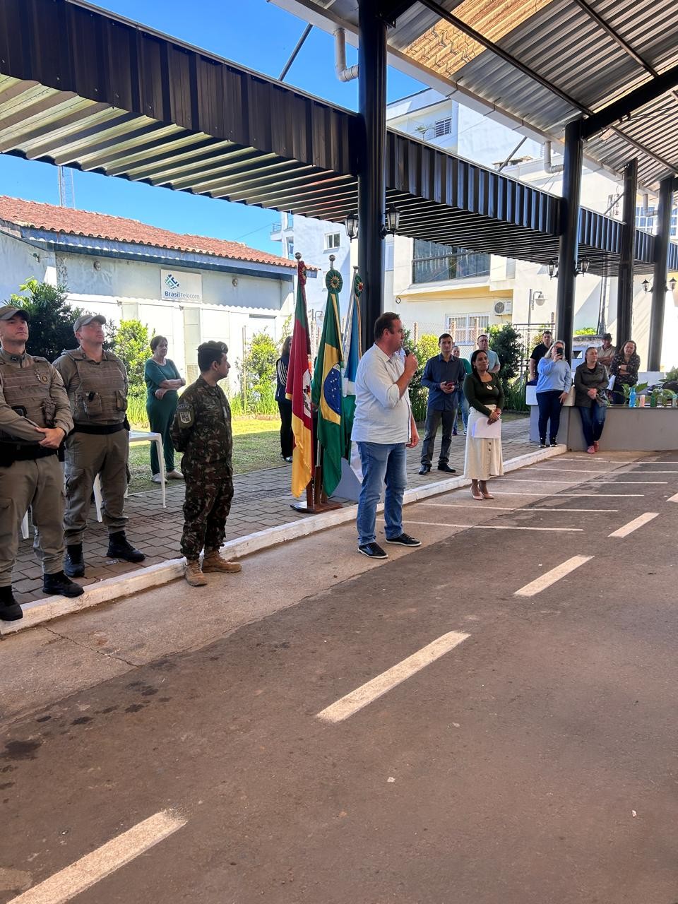 A Brigada Militar foi representada pelo sargento e comandante Diovane Veber, acompanhado pelo soldado Vilson. Durante a cerimônia, o jovem dispensado Daniel Augusto Lenhart teve destaque ao liderar o grito de guerra.