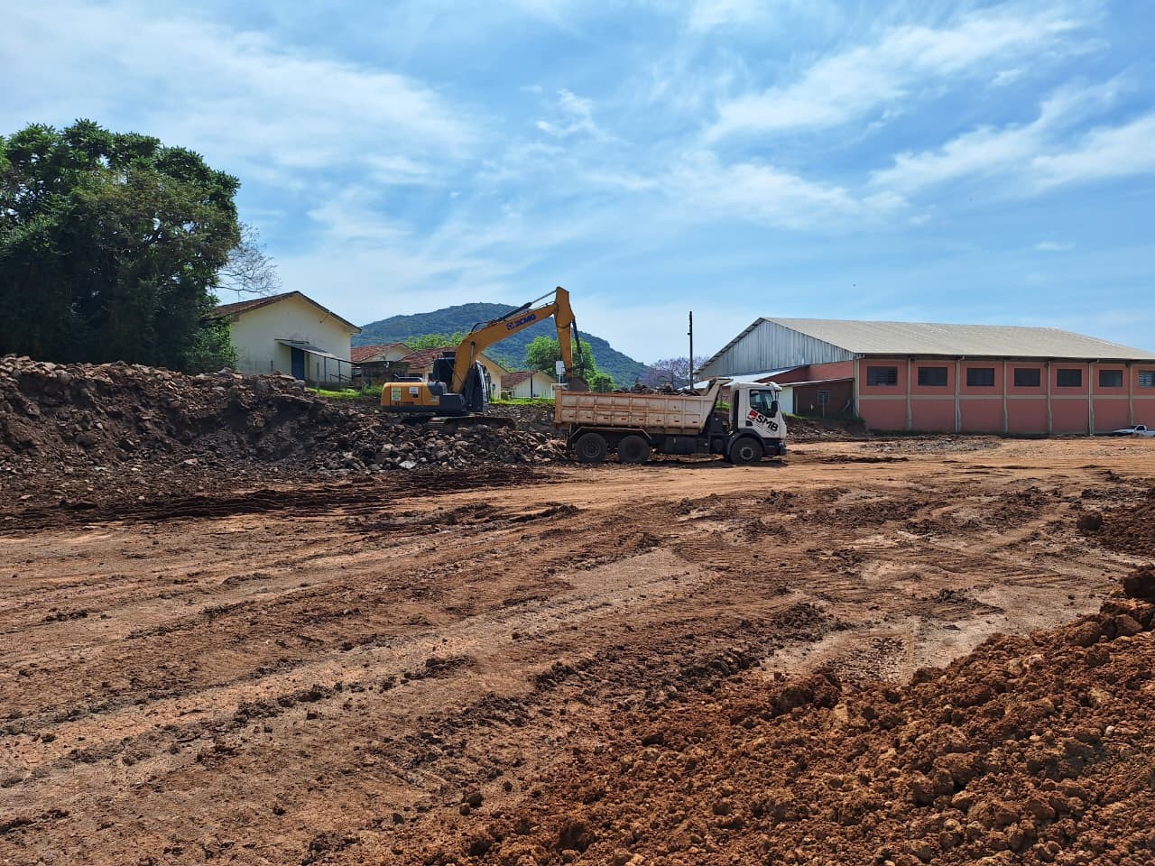 Foram intensificados os trabalhos de terraplenagem na área onde serão construídas duas novas instituições de ensino do município. O local, situado ao lado do ginásio da Sociedade Escolar, também receberá uma nova estrada de acesso, com o objetivo de melhorar o fluxo de veículos e garantir mais segurança e mobilidade.